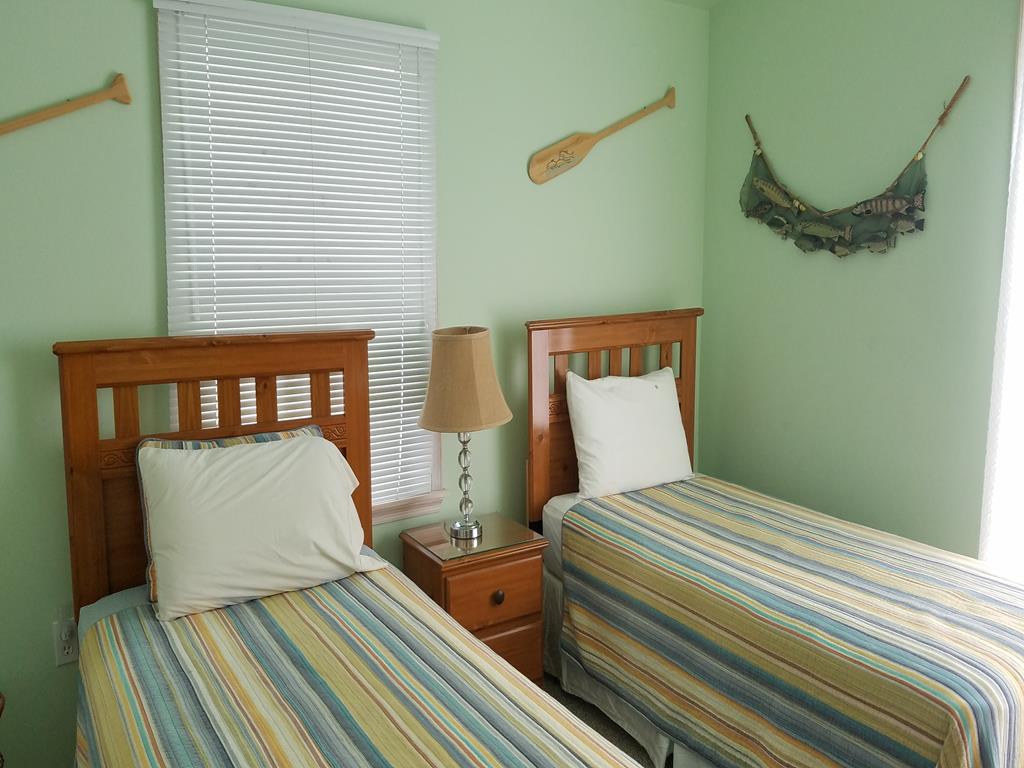 The 1st level includes the garage, 2 bedrooms - 1 with a King bed and 1 with twins and hall bath. 2nd level is a bedroom with a King bed and private deck, a full hall bath, living, dining and kitchen and large front deck. 3rd floor has 2 bedrooms, 1 with a King and 1 with twins & deck, also a hall bath. 2021-owner removed all pillows & comforters