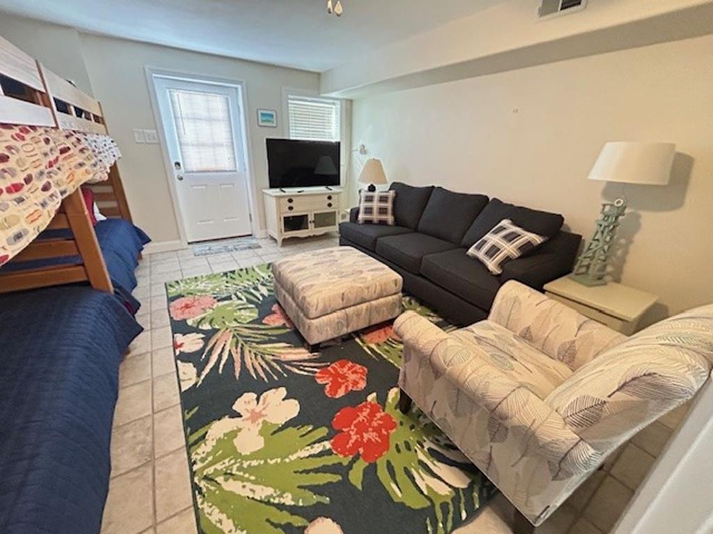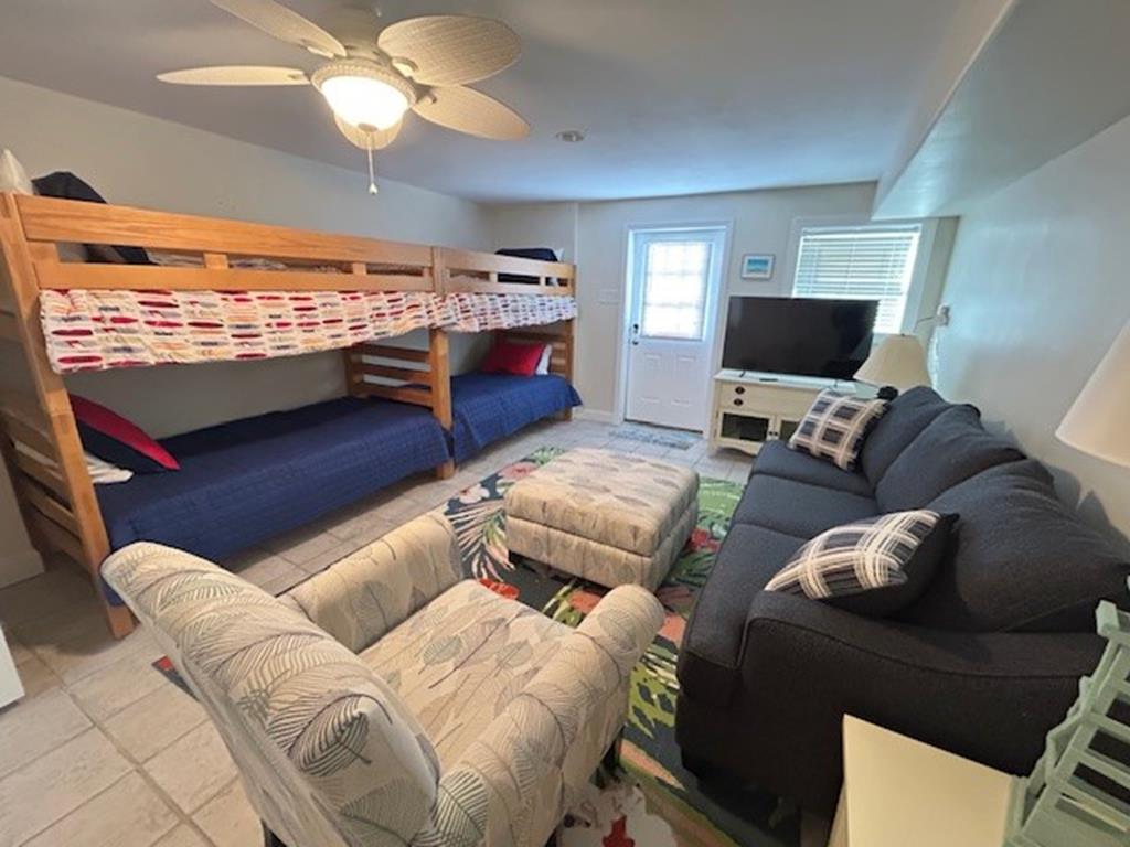 You will have access to the garage, which will include 12 beach chairs and 2 umbrellas. The bonus room is located at the back of the house with 2 bunk beds, sofa, chair, and another TV. The outdoor covered shower has been expanded with extra space, the backyard is fenced and there will be a gas grill . The new owners will continue to update throughout winter and spring with additional décor.